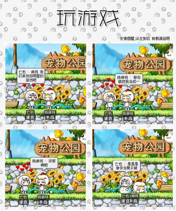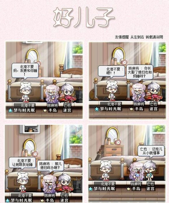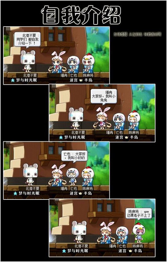 该四格漫画全是热爱冒险岛的玩家自己创作并邀请朋友或者单独表演而做成的,希望大家能够喜欢
