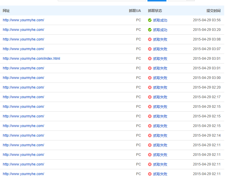 提示全部抓取失败,而抓取lnshengyou.com的时候发现是成功的,带WWW的就是抓取失败,同样的解析到一个IP出现了不同结果吓得笔者不知道是什么情况,在申请了两次IP纠错后在3.56的时候再次诊断已恢复正常...